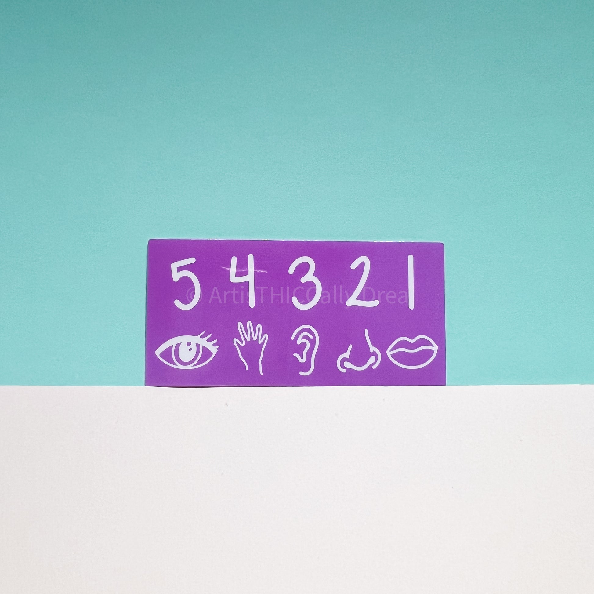 If you are having a panic attack or overstimulated, you can use the 5-4-3-2-1 method. This sticker gives you a visual reference to use when in need.