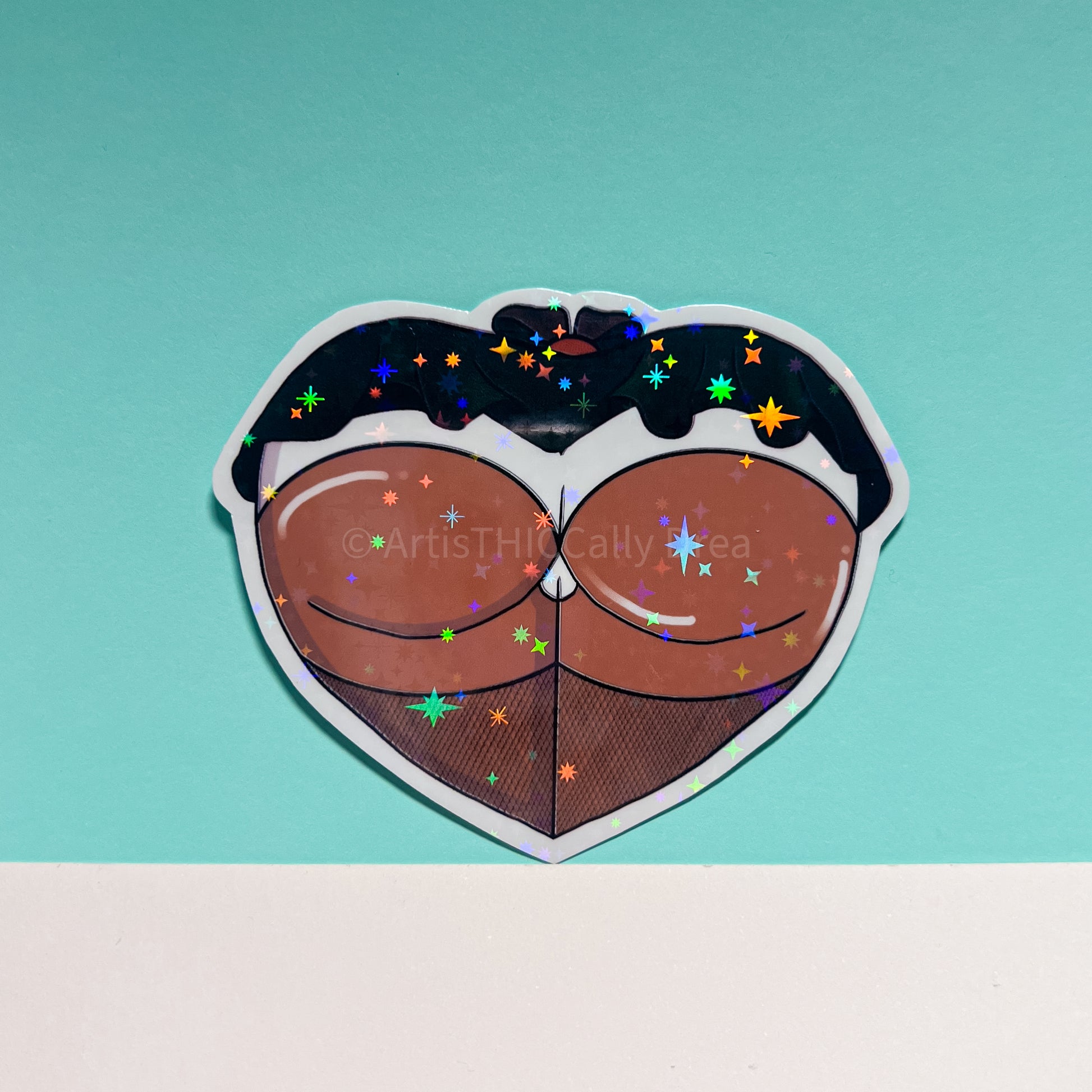 This sticker is printed on sticker paper with a star, holographic laminate overlay.