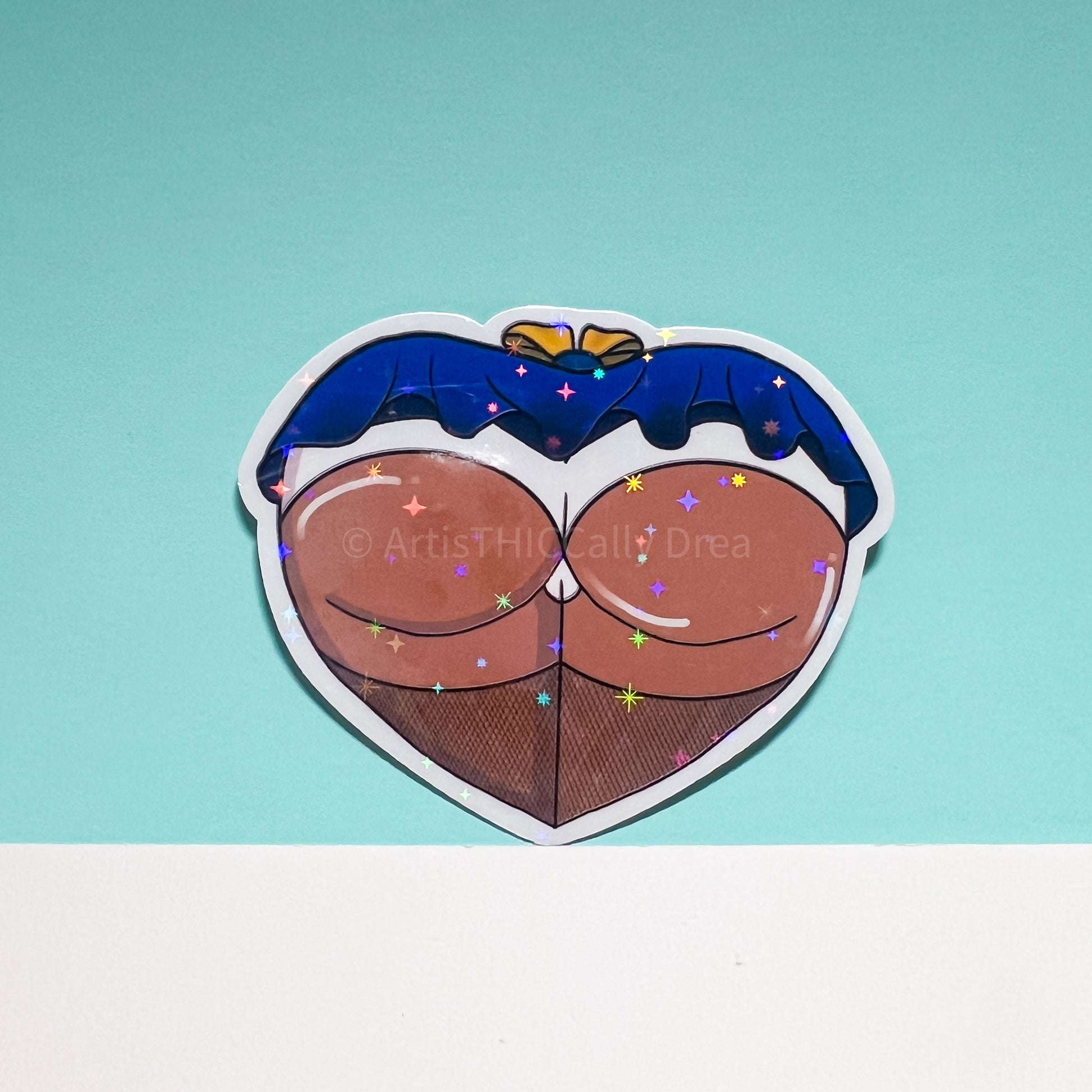 This sticker is printed on sticker paper with a star, holographic laminate overlay.